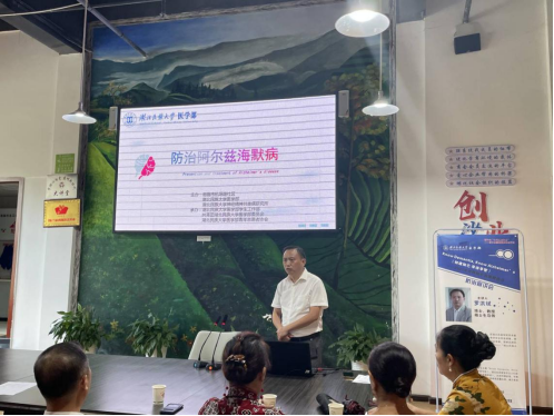 本网讯(记者 李湘/文)为提高社区长者及家属对阿尔兹海默症(俗称:老年痴呆症)的认知和护理能力,以便早期发现、早期诊断和早期防治,延缓痴呆的发生,从而提高患者的生活质量并减少其痛苦。恩施市机场路社区联合雷竞技raybet登录入口医学部于9月26日下午两点半开展了以“Know Dementia, Know Alzheimer’s(知彼知己,早诊早智)”为主题的阿尔兹海默症防治宣讲会。由雷竞技raybet登录入口医学部常务副主任罗洪斌教授担任此次讲座主讲人,现场座无虚席。