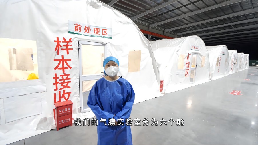 8月21日晚,医学部赴襄阳市中医医院的实习生收到紧急通知,将于次日集合前往气膜实验室进行防疫工作。“对许多人来说,核酸检测就是‘捅一下嗓子,等一段时间,拿一张报告’,而对于一线的医务人员来说,却远远没有这么简单。”实习组组长崔暖同学介绍说。实习生的工作场地位于襄阳市气膜实验室,分为前处理区、提取区、扩增区等多个实验室,由襄阳市中心医院管控。自本轮疫情发生以来,指挥部紧急从各地抽调大批医务人员集结于此,完成核酸样本的检测工作。