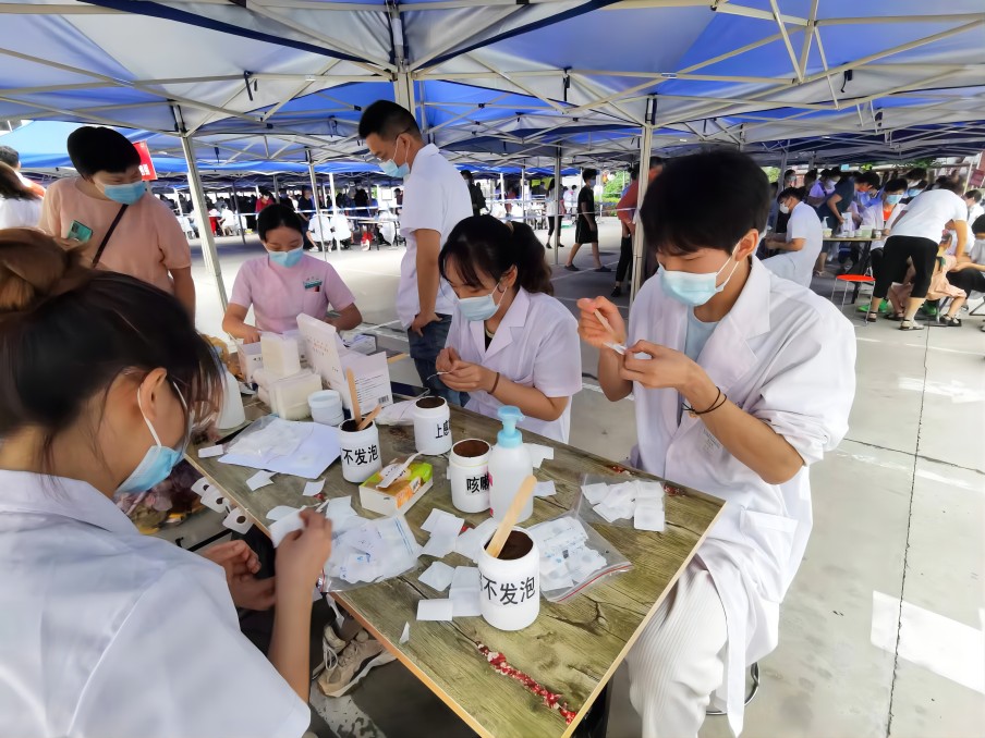 民大实习生展现出的不辞辛苦、敢于担当、艰苦奋斗的精神令襄阳中医医院的领导和职工印象深刻。在接受采访时,崔暖说:“我们始终铭记‘艰苦奋斗、甘于奉献、自强不息、追求卓越’的民大精神并将其付诸于实践。作为医学生,在人民健康事业中奉献自己的力量,是一件无比光荣的事情,所以我们能不辞酷暑地完成贴敷任务。”医学生用无限的热情与激情、用实际行动践行“人民至上、生命至上”的理念。