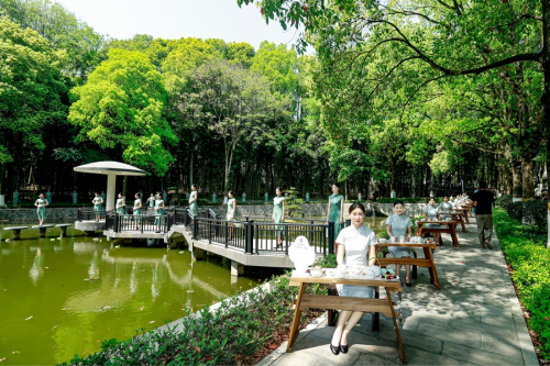《典籍里的恩施茶》以校园景观为表演舞台,通过对我国茶文化发展历史脉络的系统梳理,将“茶廉文化”精神内涵融入叙事框架,以如盐在水、润物无声的方式有效完成了茶文化与廉文化的有机融合。表演设立“典籍茶韵·廉脉长传——《典籍里的恩施茶》”“鉴史明廉·清风入怀——《茶廉故事知行路》”“茶韵涤心·清漪鉴廉——《三味茶席品初心》”“茶园践廉·清风化行——《颂红歌涵养廉心》”四站沉浸式体验区,通过实景表演,不仅展现了泡茶器皿、泡茶方法及茶礼仪,还现场示范了恩施茶的冲泡技法。表演通过再现陆羽撰写《茶经》、陆纳以茶待客等“茶廉”文化故事,为在场师生分享了“以茶促廉”的历史由来、文化故事和精神要义,引导大家感悟以茶养廉古今共鸣的源远流长和“人生当如茶,清廉胜浮华”的深刻哲理。